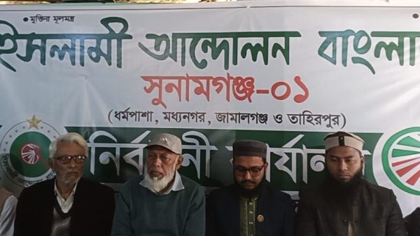 নির্বাচনী আচরণবিধির প্রতি সম্মান জানিয়ে জগন্নাথপুরে প্রচারণা পোস্টার নামিয়েছেন ধানের শীষ এর প্রার্থী